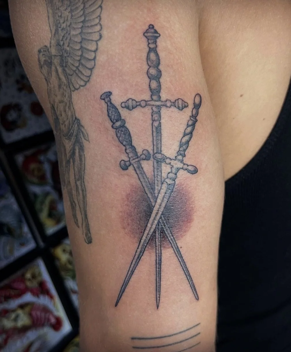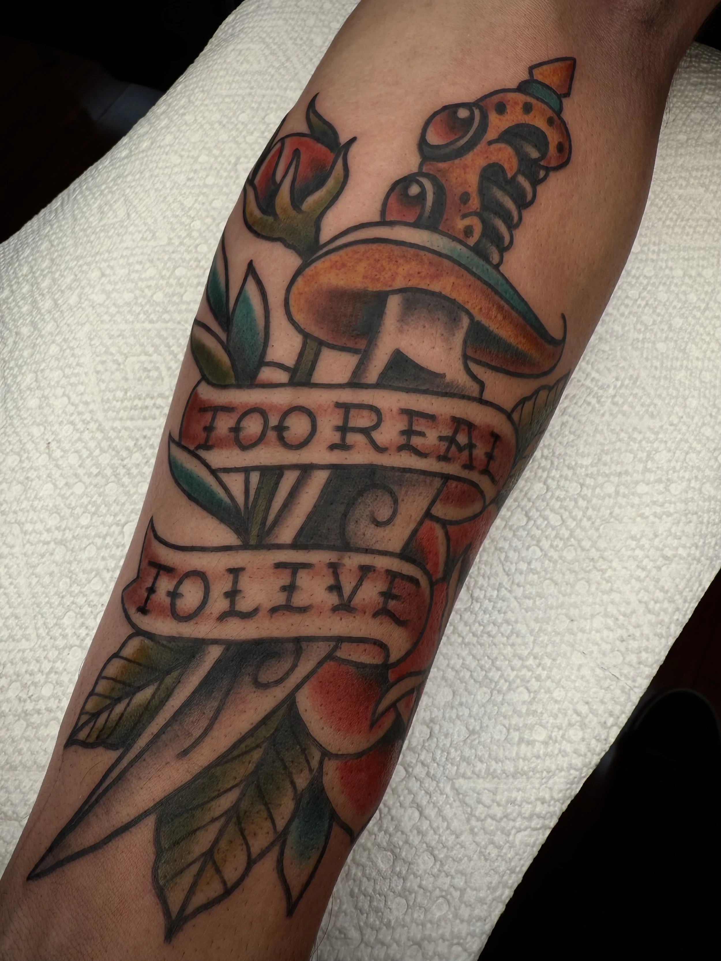 Walk-ins welcome! Custom #daggertattoo by @@justinchanger #nogoogletats