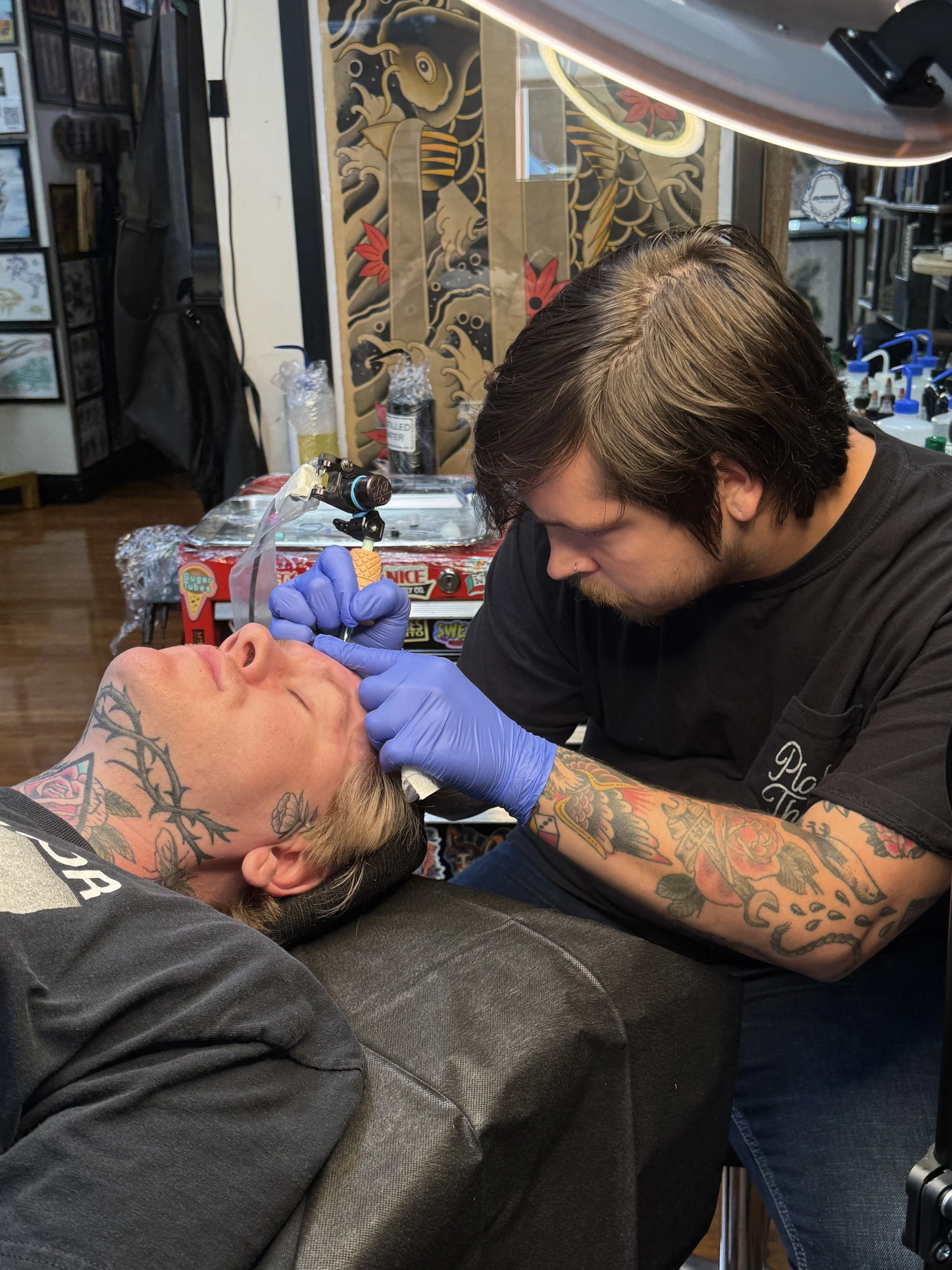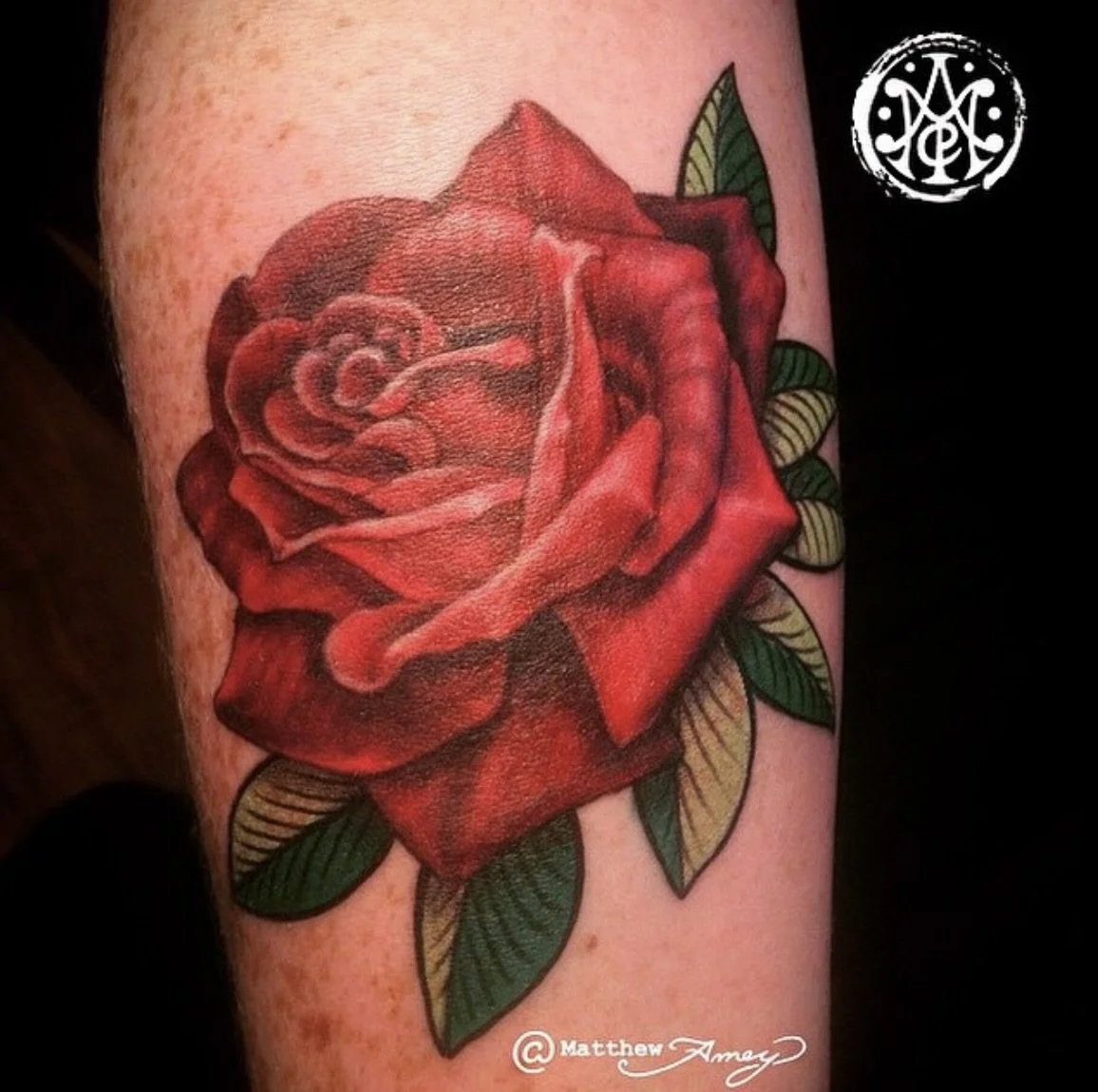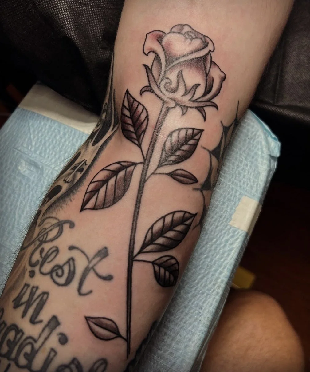 @tres222 has time for walk-ins this week! @swordstattoo and #rosetattoo by #denktats