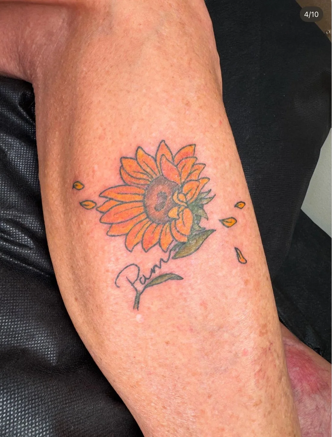 Sunflower tattoo by Nellie DeHart.