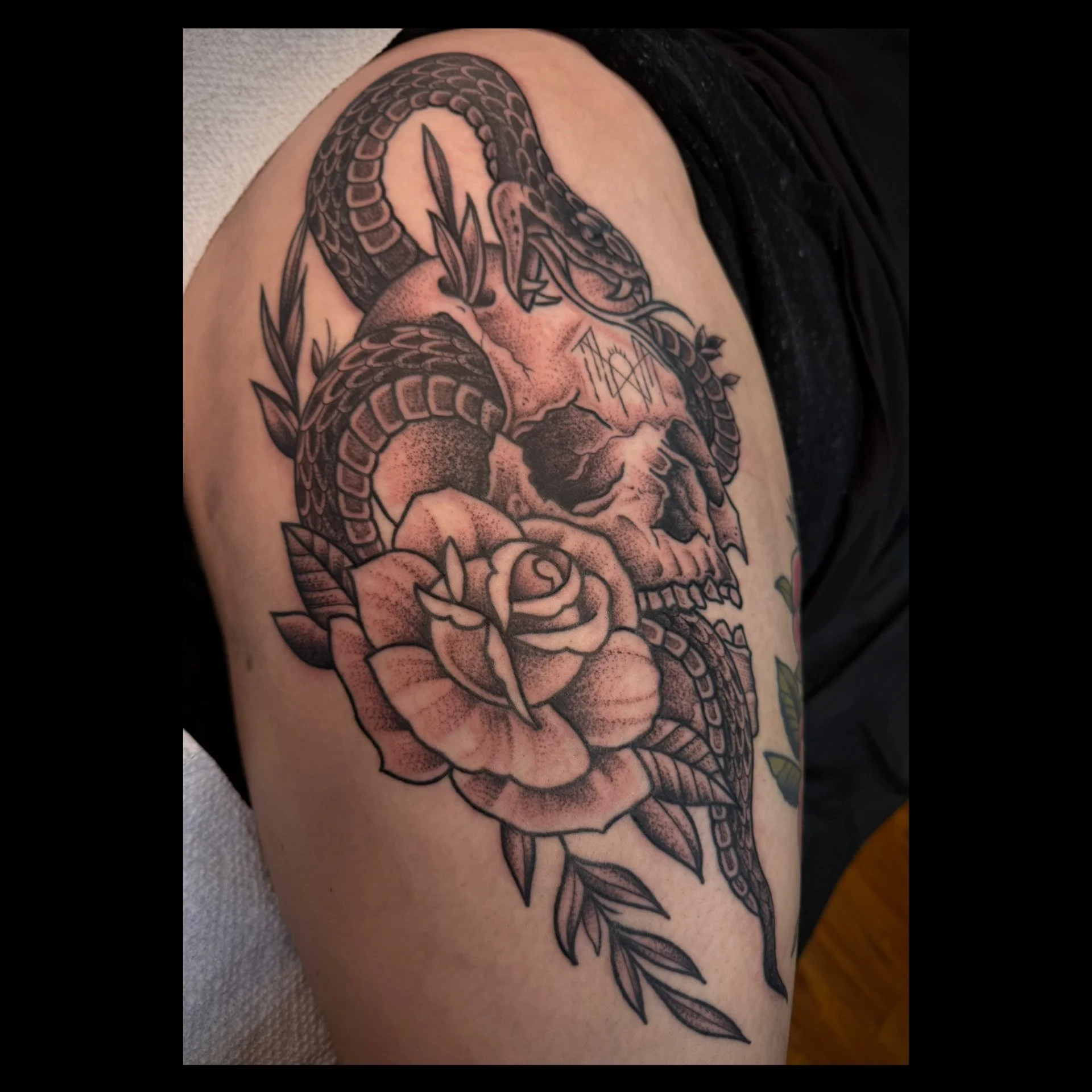 #tattoooftheweek by @justinchanger #skullandsnaketattoo #nogoogletats #thedaug96